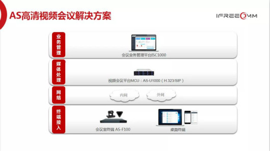 目前,捷视飞通已经发布AS高清视频会议整体解决方案,并做到MCU、会议终端、会管平台等全系列产品的高性能、高安全,其中——